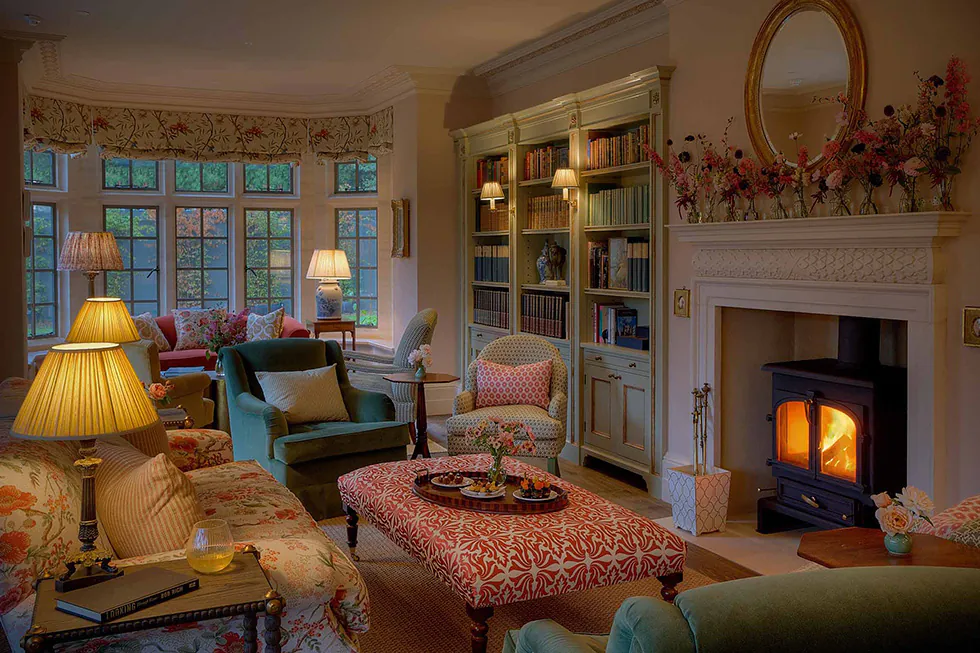 Inside, Freelands houses eight individually designed suites, each draped in rich fabrics, antique furnishings, and thoughtful details that give each room a distinctive personality while nodding to a timeless English country aesthetic. Sleeping configurations are flexible in each room to suit your group’s specific needs. Many suites also feature private furnished balconies or sweeping window views overlooking the River Test.