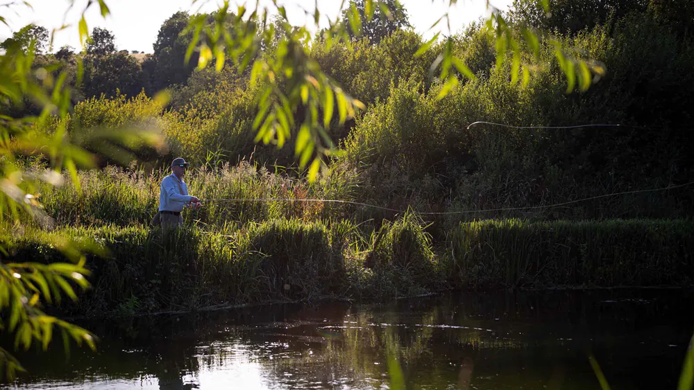 Fishing is at the heart of the estate’s offering. Guests have access to private beats along the River Test as well as the estate lake, catering to everyone from seasoned anglers to complete beginners. Beyond fishing, the estate’s woodland and riverside walking trails offer a quieter way to take in the surroundings, while the still-water lake invites guests to enjoy a refreshing swim.